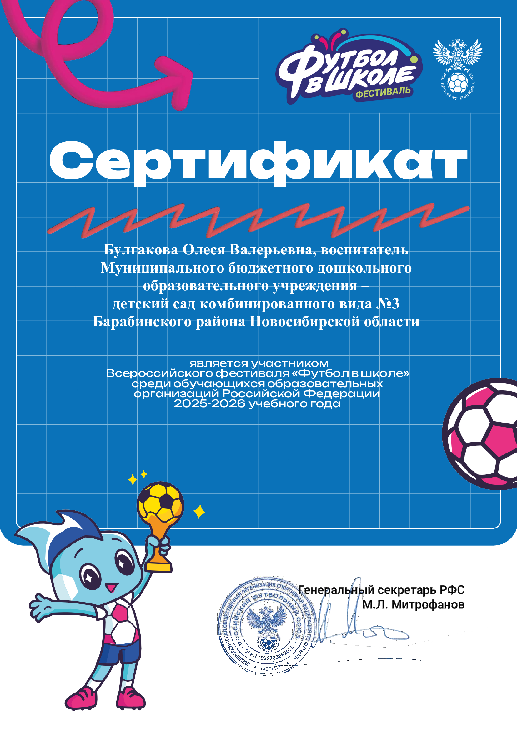 Участник Всероссийского фестиваля "Футбол в школе" среди обучающихся образовательных организаций Российской Федерации 2025-2026 учебного года