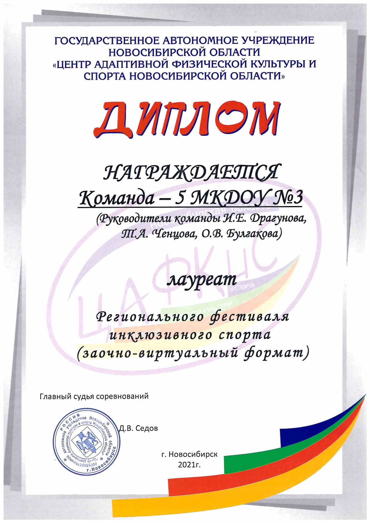 Региональный фестиваль инклюзивного спорта, диплом Лауреата, 2021 год