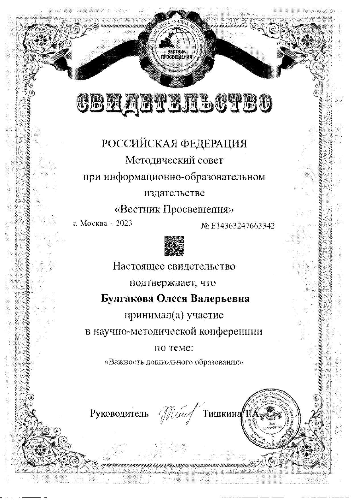 Научно-методическая конференция "Важность дошкольного образования", 2023 год